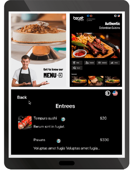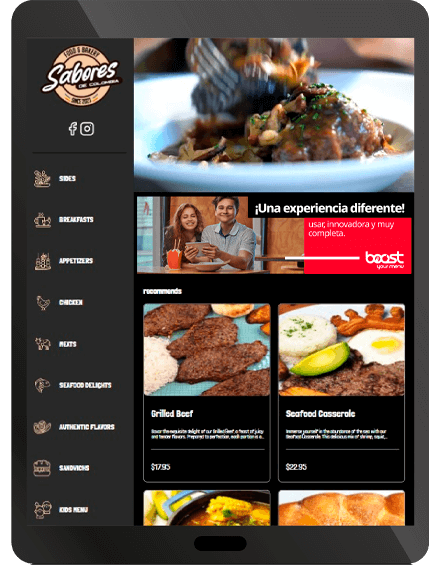 Deleita visualmente a tus clientes con imágenes y videos en alta calidad. La presentación vibrante y atractiva aumenta la conversión, despertando el apetito incluso antes de la primera mordida.